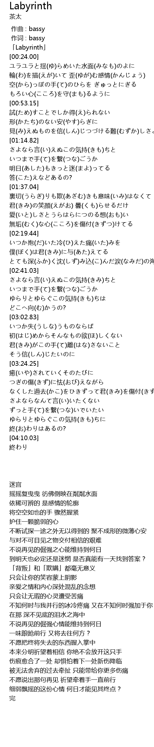 | [03:59.21] | ゆらりとゆらぐこの気持(きも)ちに 終(お)わりはあるの? |