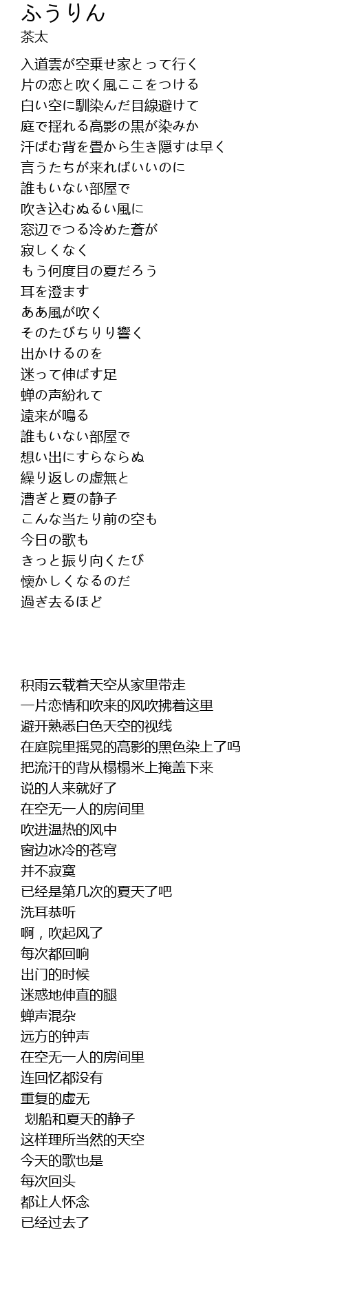 | 歌曲 | ふうりん |