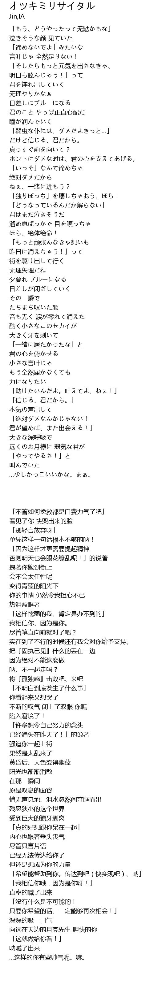 | [02:35.69] | 「希望能帮助到你。传达到吧(快实现吧)、呐」 |
