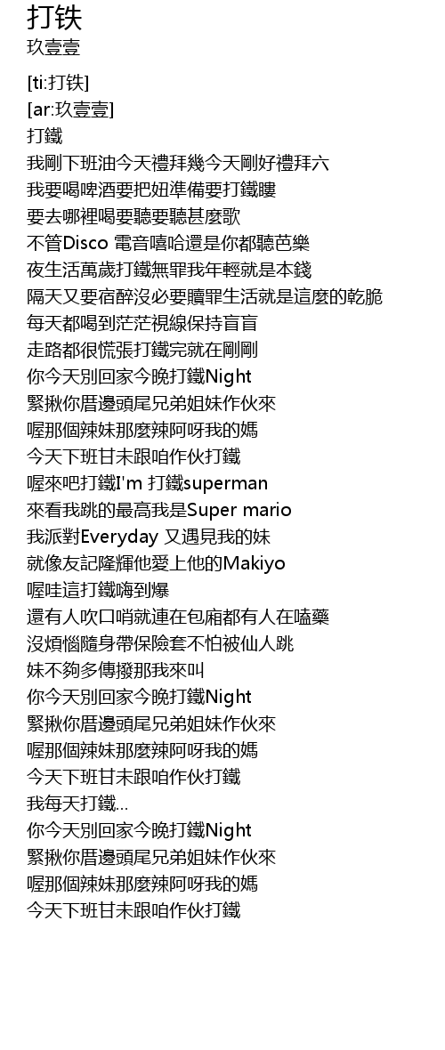 | [00:01.591] | 打鐵 |