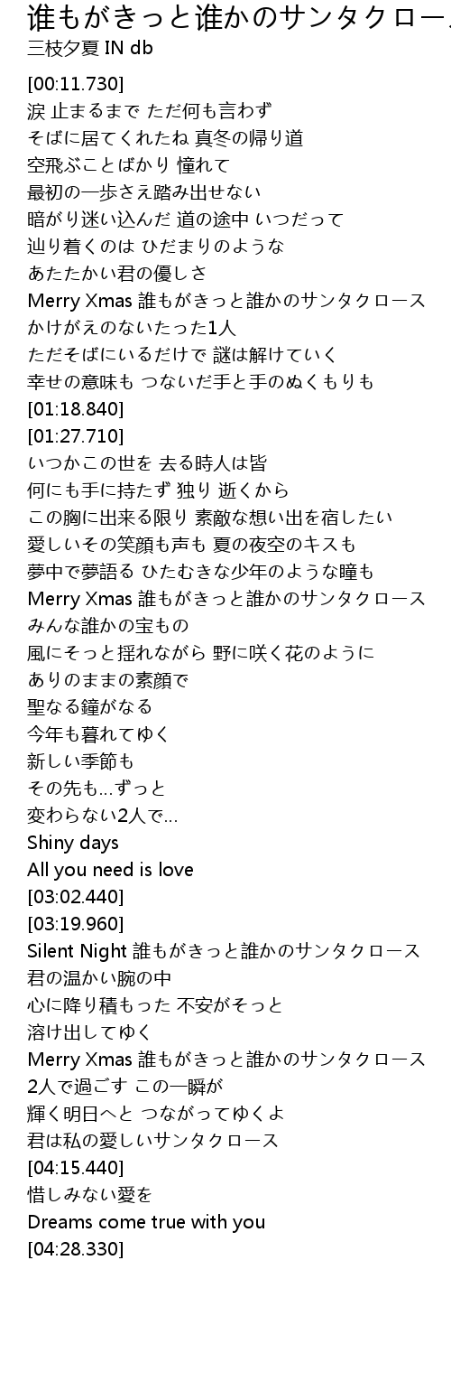 | [03:46.330] | Merry Xmas 誰もがきっと誰かのサンタクロース |