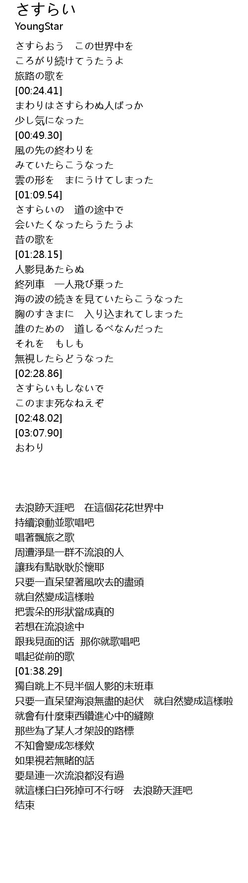 | [02:40.79] | 就這樣白白死掉可不行呀 去浪跡天涯吧 |