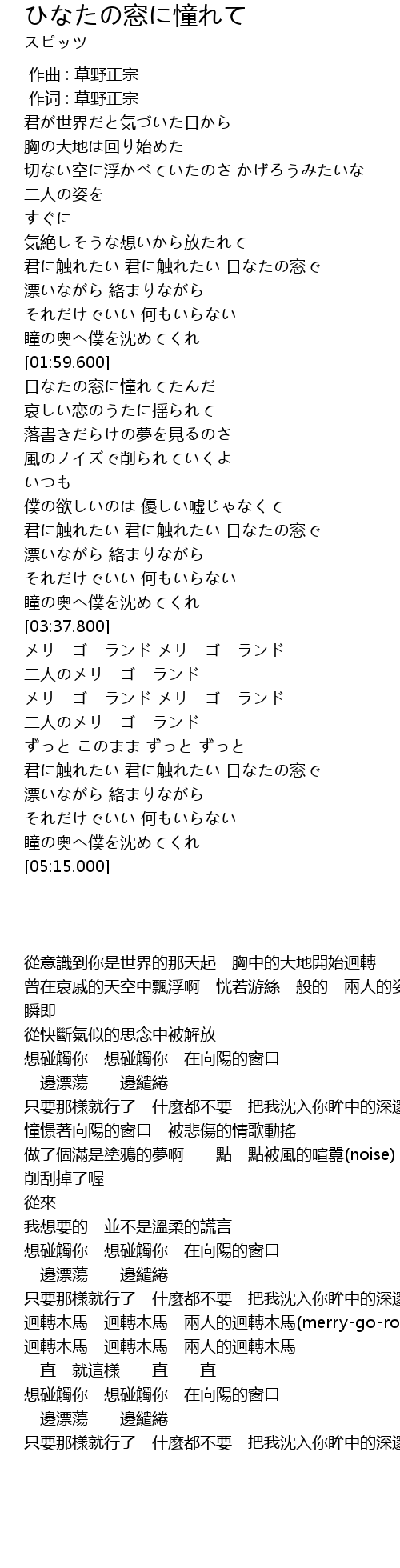 | [00:01.00] | 作词 : 草野正宗 |