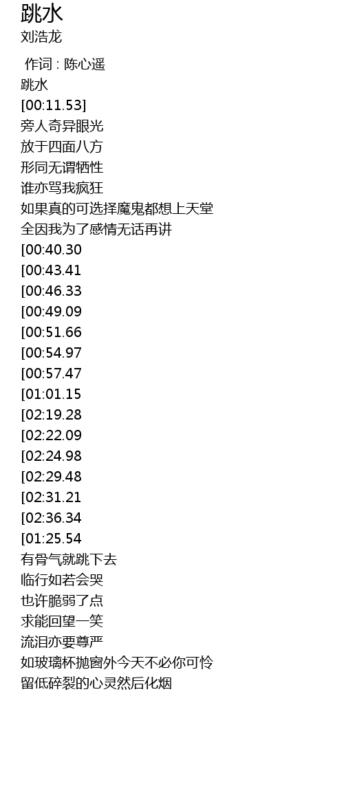 | [02:41.08][01:25.54] | 你一说就跳下去 |
