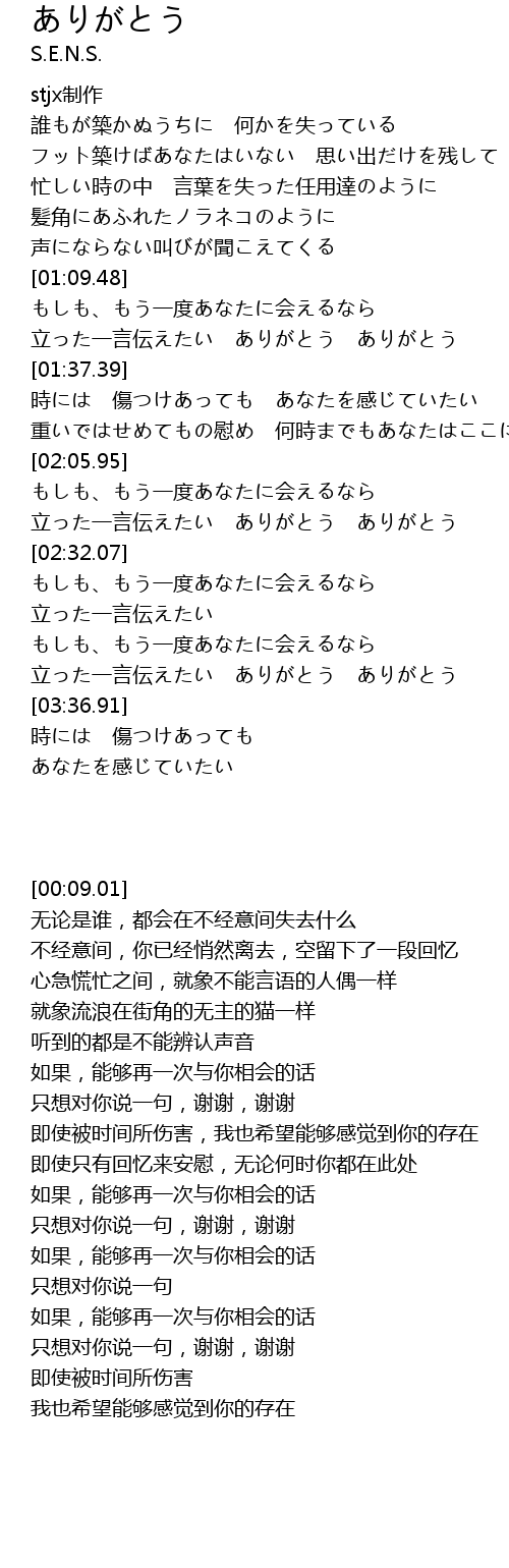 | [03:17.28] | 立った一言伝えたい ありがとう ありがとう |