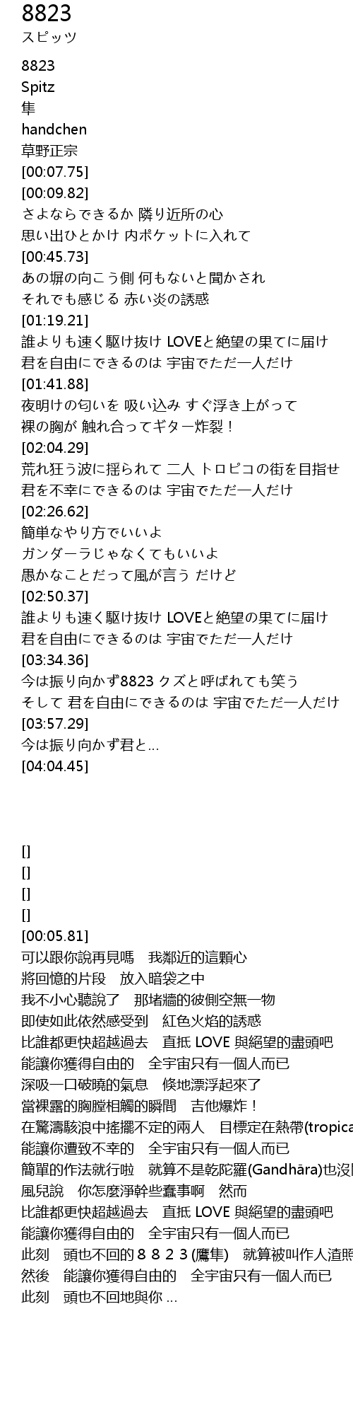 | [03:36.25] | 此刻 頭也不回的8823(鷹隼) 就算被叫作人渣照樣笑嘻嘻 |