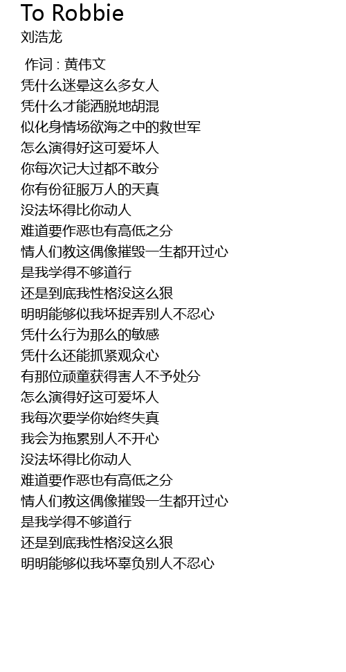 | 歌曲 | To Robbie |