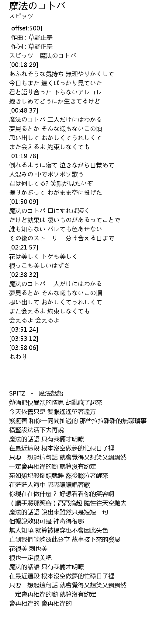 | [00:00.00] | SPITZ - 魔法話語 |