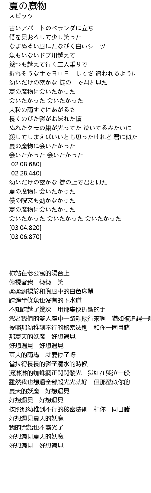 | [02:50.870] | 好想遇見夏天的妖魔 |