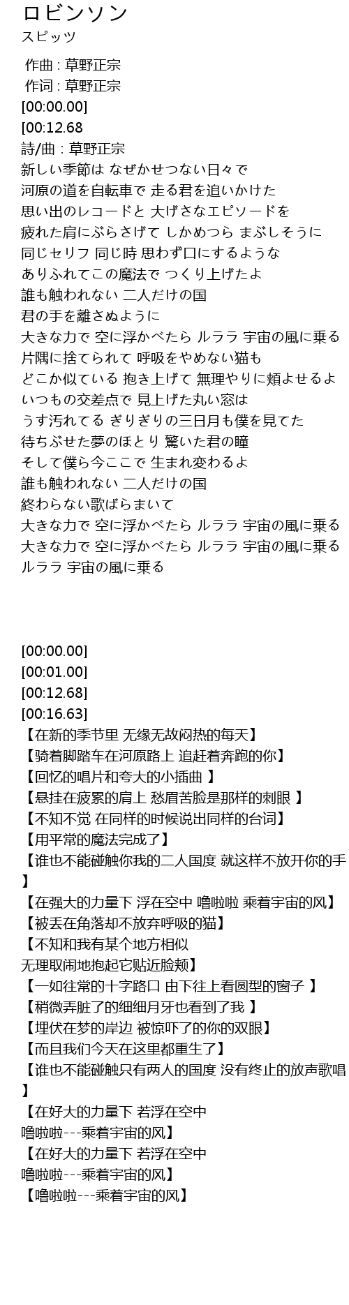 | [02:37.89] | 【在强大的力量下 浮在空中 噜啦啦 乘着宇宙的风】 |