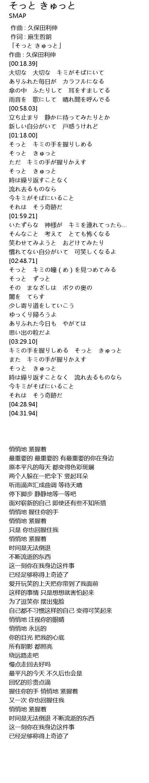 | [03:51.26] | キミの手を握りしめる そっと きゅっと |
