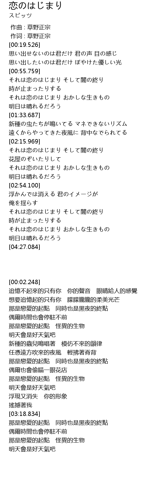 | [02:37.252] | それは恋のはじまり おかしな生きもの |