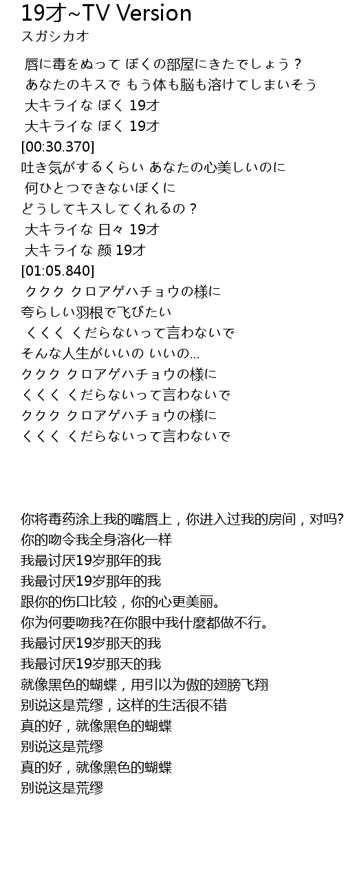 | [00:21.360] | 大キライな ぼく 19才 |
