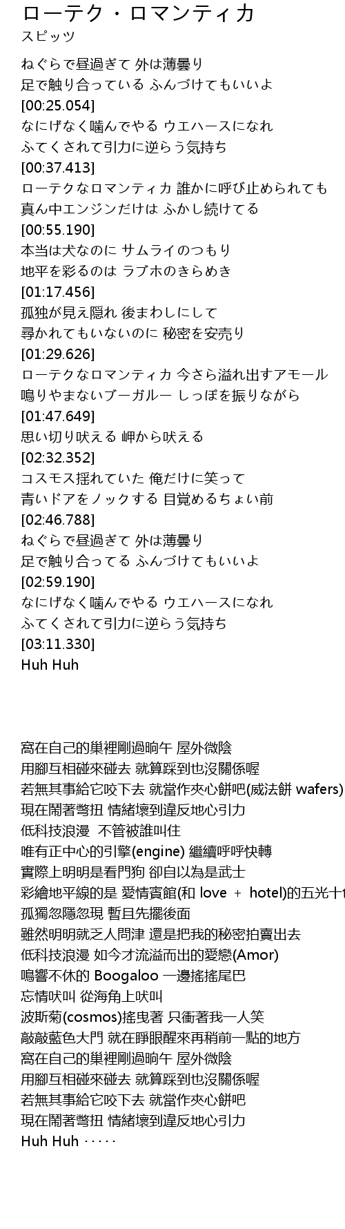 | [01:29.929] | ローテクなロマンティカ 今さら溢れ出すアモール |