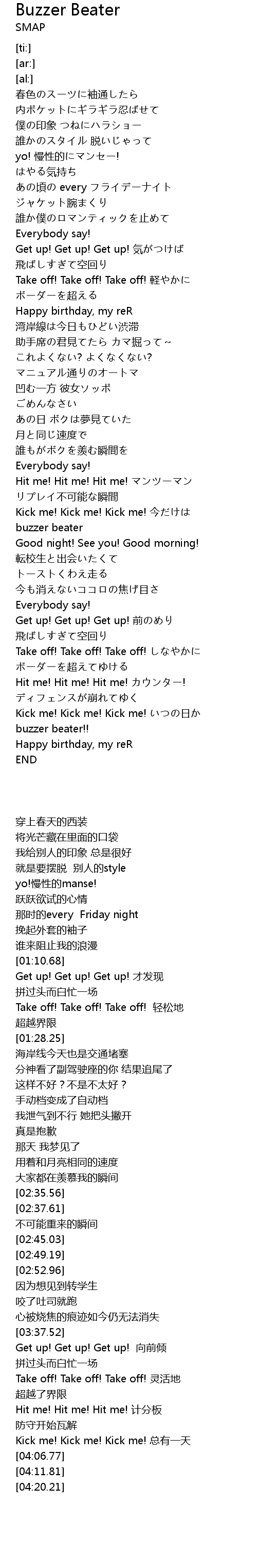 | [04:02.53] | Kick me! Kick me! Kick me! 总有一天 |