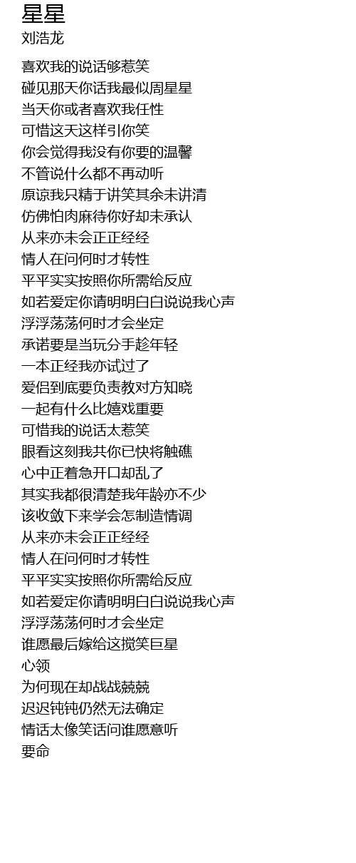 | [03:20.02] | 情话太像笑话问谁愿意听 |