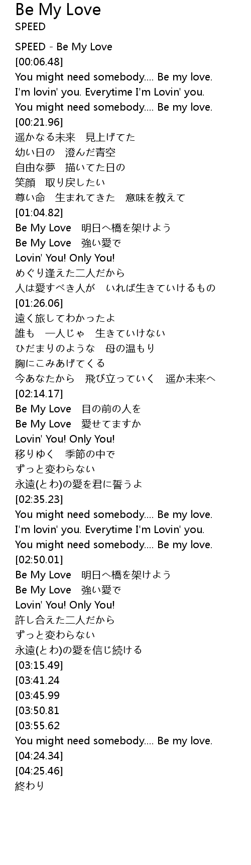 | [00:00.00] | SPEED Be My Love |
