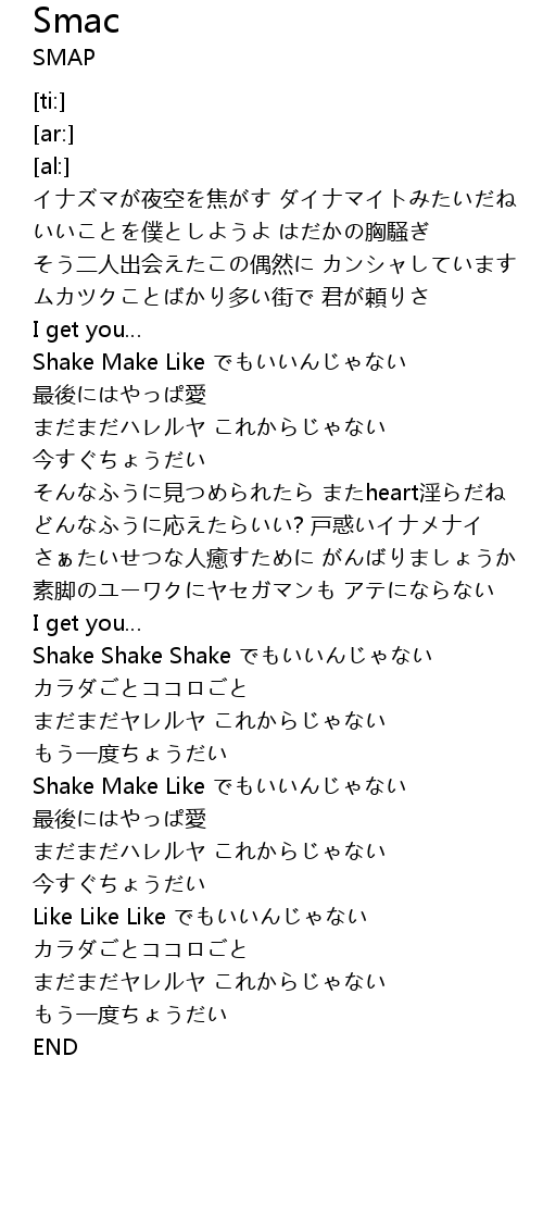 | [03:23.94] | Shake Make Like |