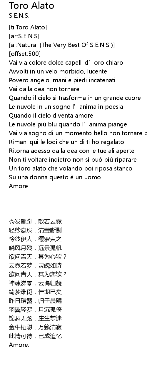 | [02:27:00] | Vai via sogno di un momento bello non tornare più |