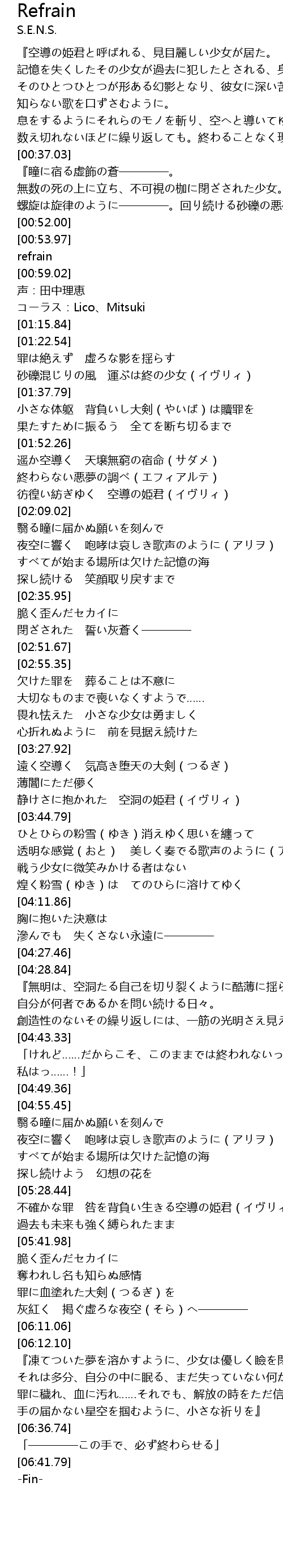 | [06:13.00] | 『凍てついた夢を溶かすように、少女は優しく瞼を閉じた。 |