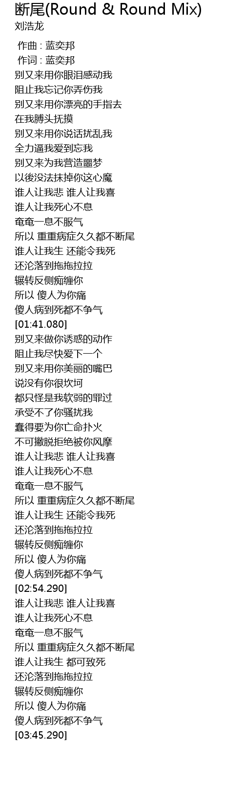 | [03:20.280] | 所以 重重病症久久都不断尾 |