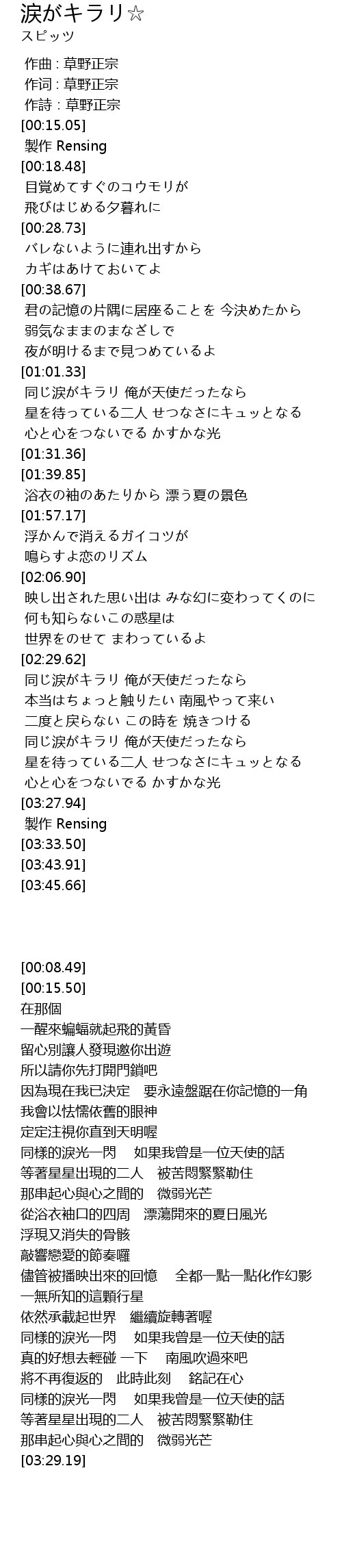 | [00:08.49] | 作詩:草野正宗 |