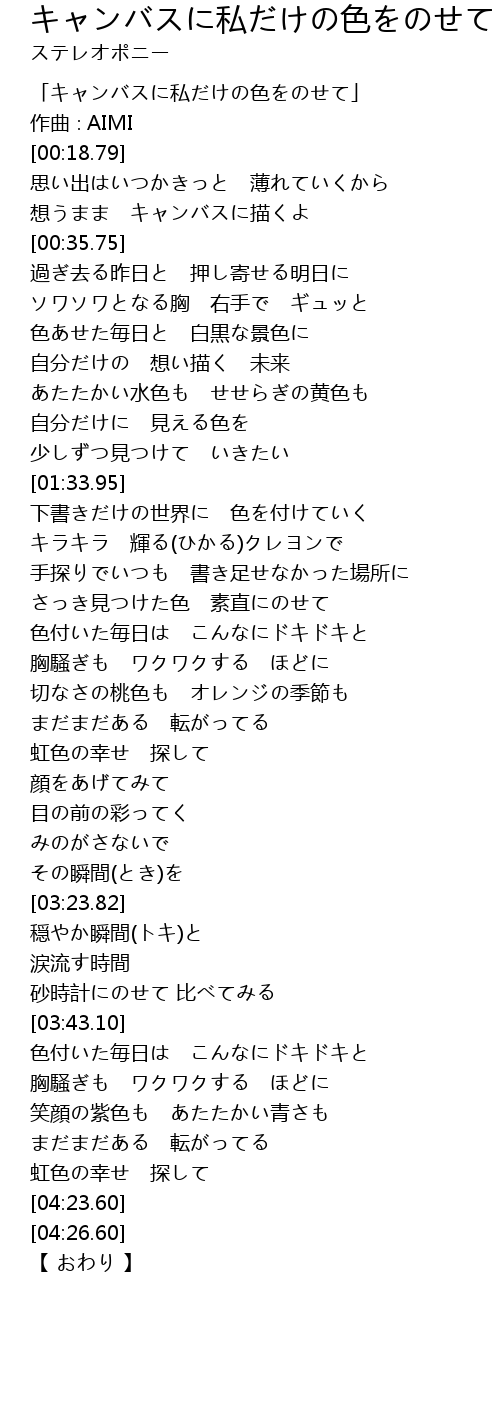 | [00:01.79] | 「キャンバスに私だけの色をのせて」 |