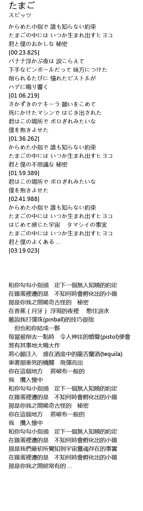 | [02:50.490] | 在雞蛋裡邊的是 不知何時會孵化出的小雞 |