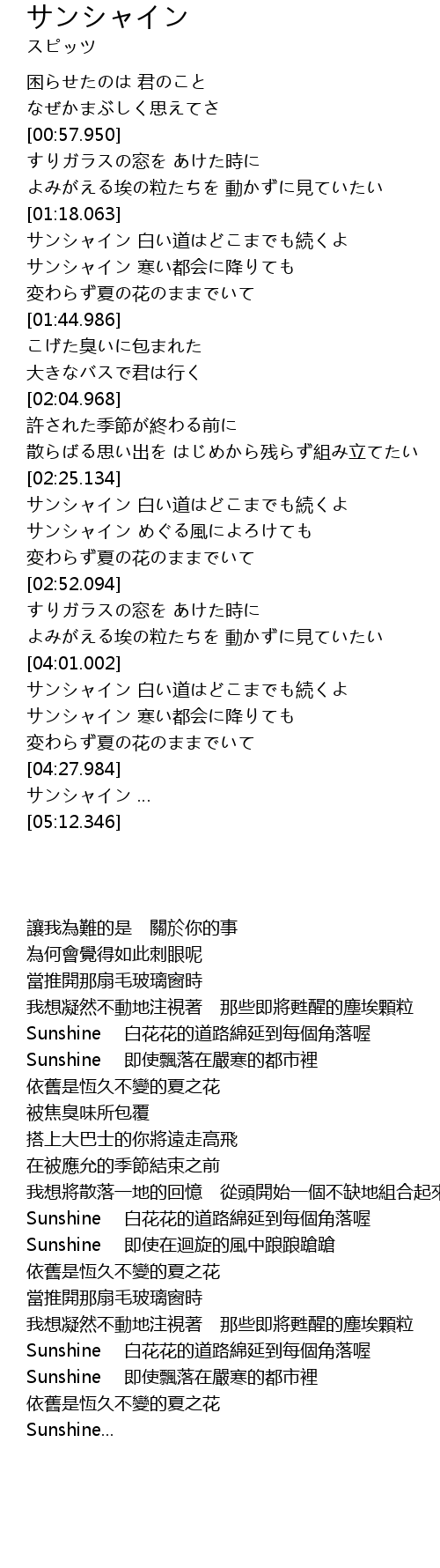 Sunshine 即使在迴旋的風中踉踉蹌蹌 |