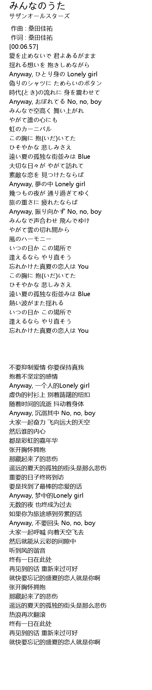 | [00:01.00] | 作词 : 桑田佳祐 |