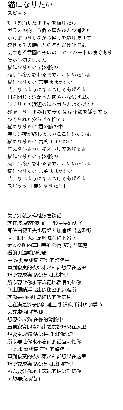 | [02:40.130] | 想要变成猫 话语是如此的虚幻 |