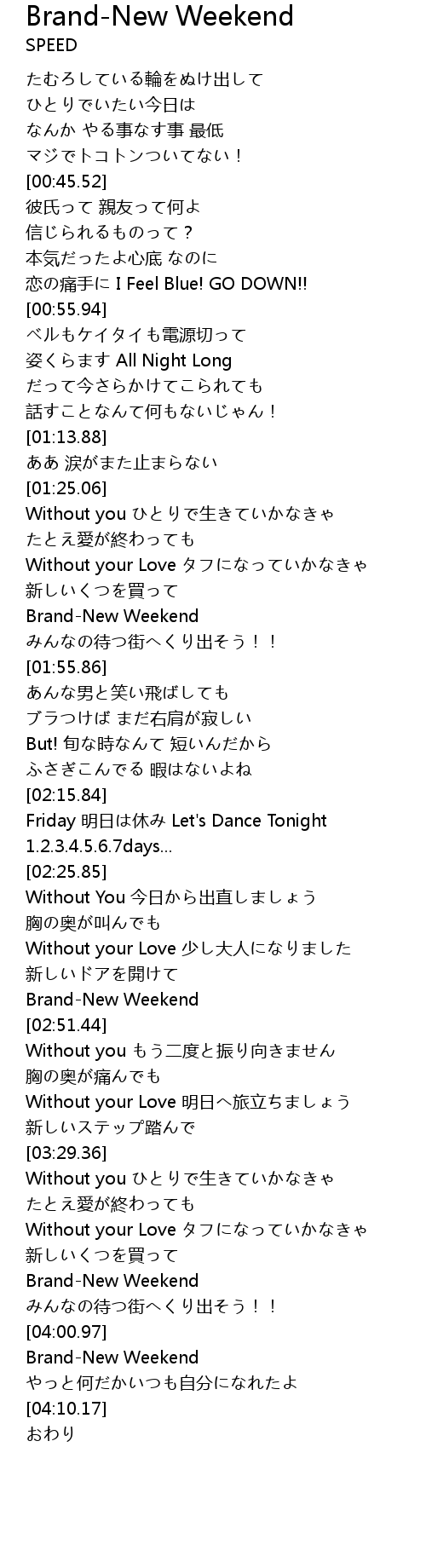 | [04:02.02] | Brand-New Weekend |