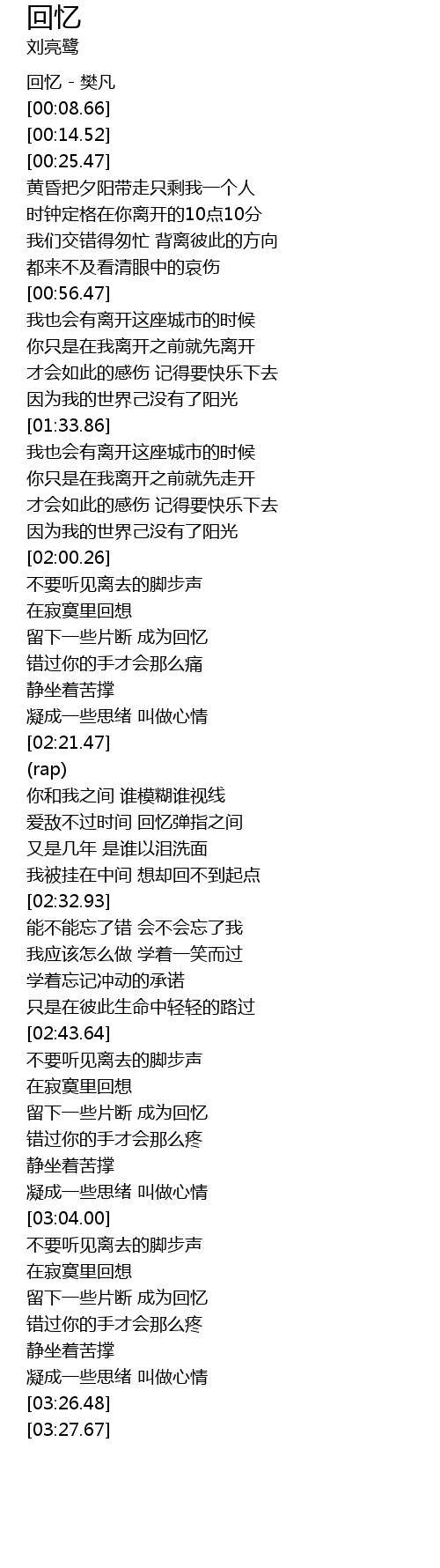 | [03:10.10] | 留下一些片断 成为回忆 |