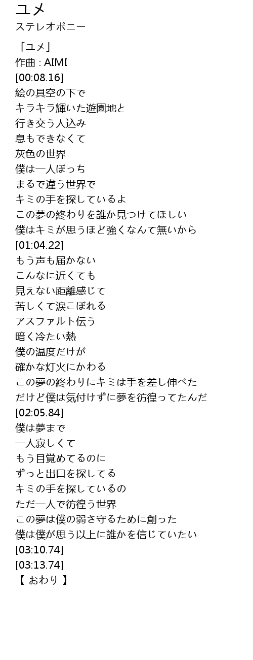 | [03:01.01] | 僕は僕が思う以上に誰かを信じていたい |