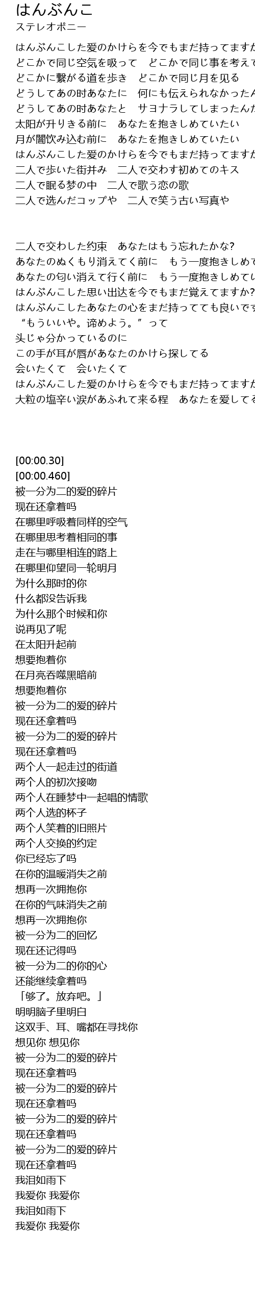 | [03:01.149] | 被一分为二的爱的碎片 |