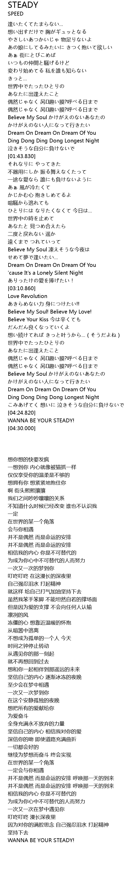 | [04:26.090] | WANNA BE YOUR STEADY! |