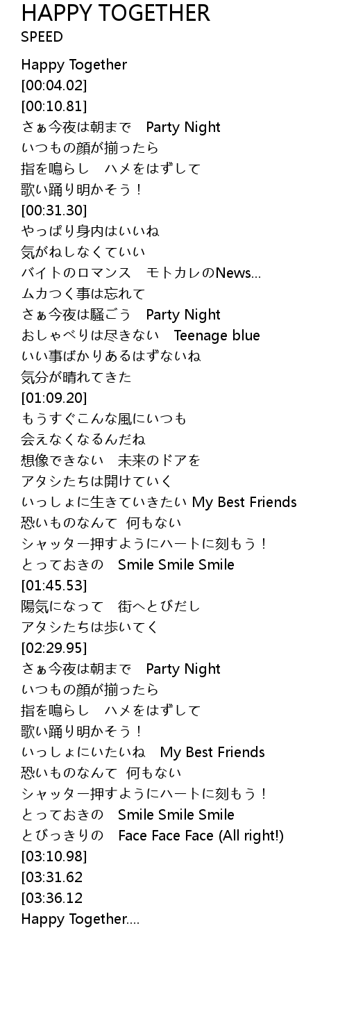 | [03:45.32][03:36.12][03:27.02][03:17.83] | Happy Together |