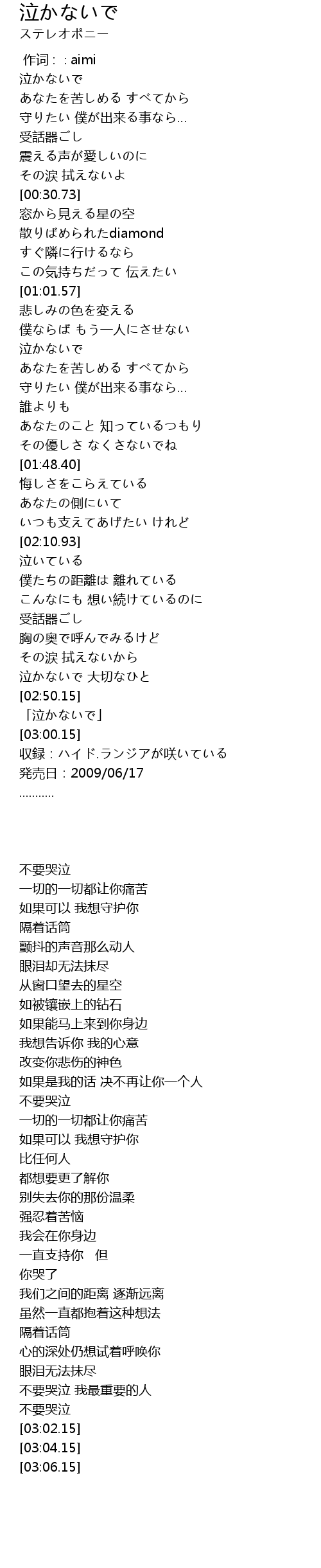 「泣かないで」 |