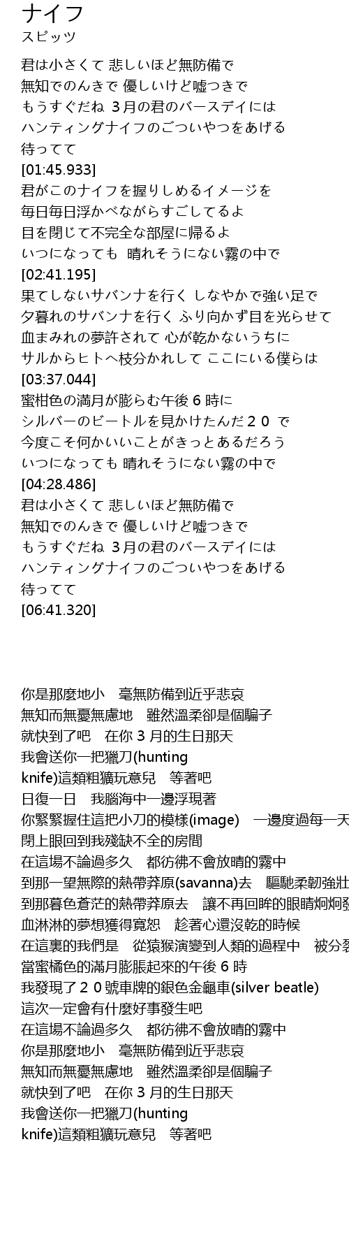 | 歌曲 | ナイフ |