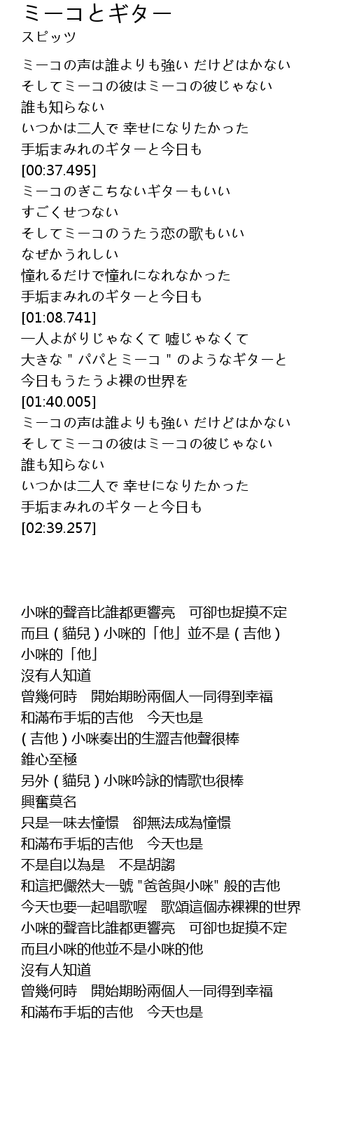 | [00:40.795] | ( 吉他 ) 小咪奏出的生澀吉他聲很棒 |