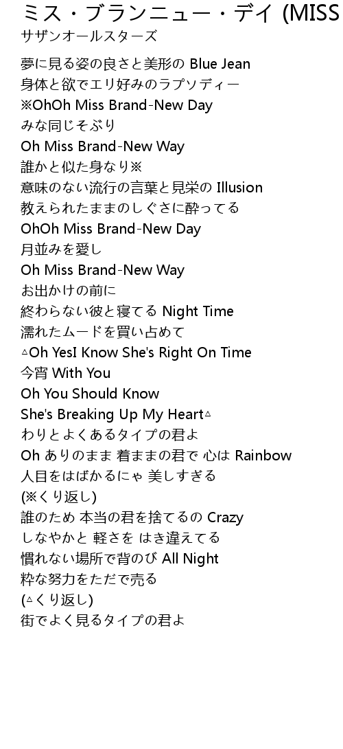 | 歌曲 | ミス・ブランニュー・デイ (MISS BRAND-NEW DAY) |