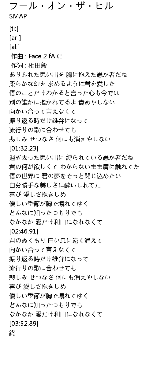 | [00:00.00] | zuo qu : Face 2 fAKE |