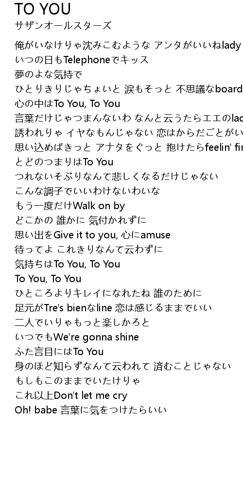 | ふた言目にはTo You | |