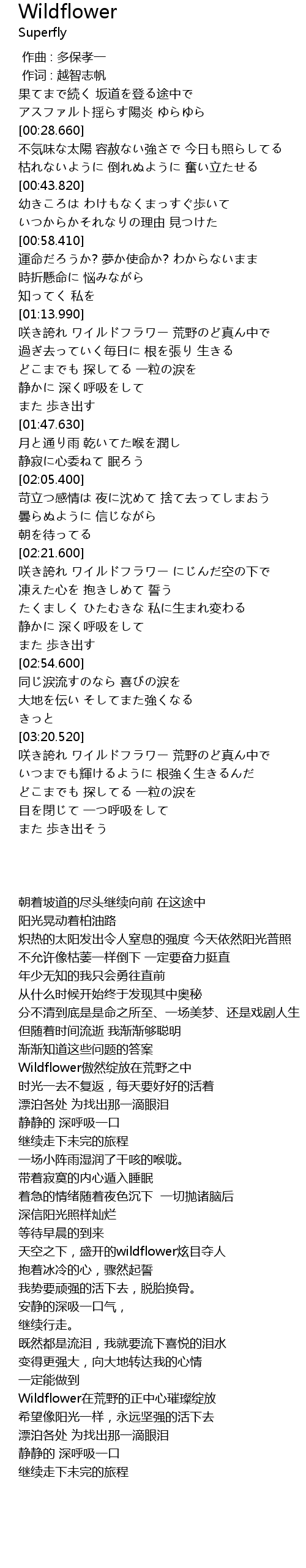 | [03:21.520] | Wildflower在荒野的正中心璀璨绽放 |