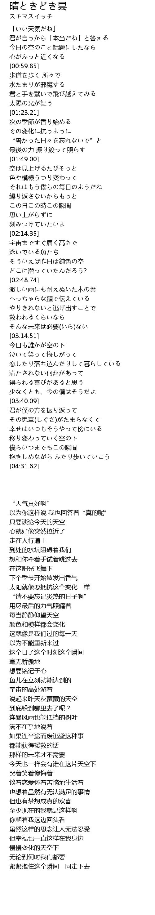 | [00:49.19] | 今日の空のこと話題にしたなら |
