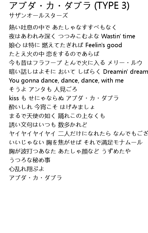 | 歌曲 | アブダ・カ・ダブラ (TYPE 3) |