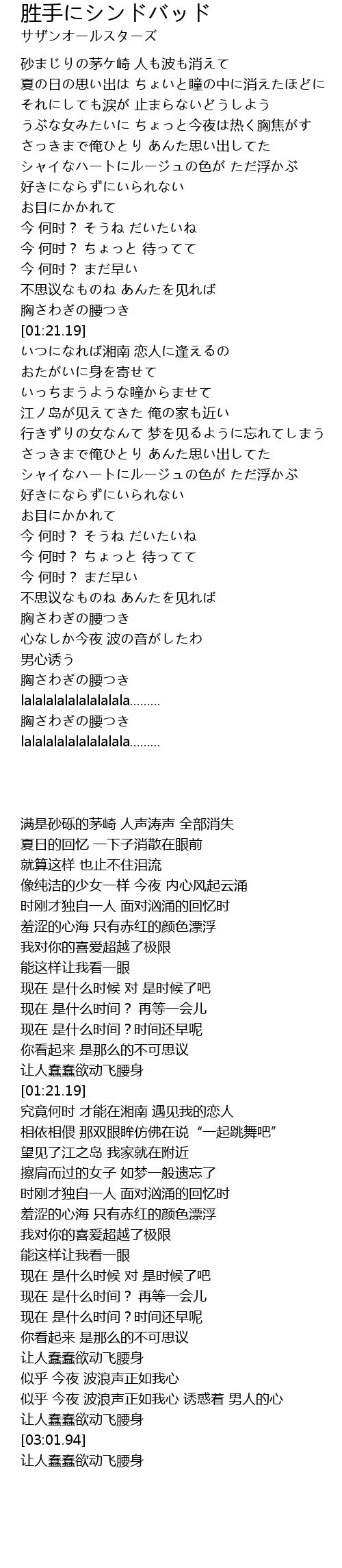 | [01:37.18] | 究竟何时 才能在湘南 遇见我的恋人 |