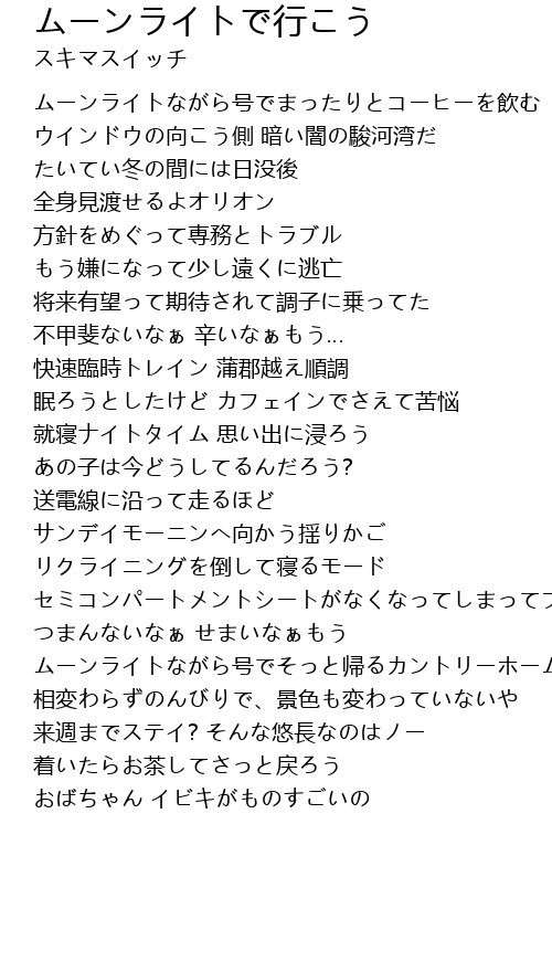 | [02:21.20] | ムーンライトながら号でそっと帰るカントリーホーム |
