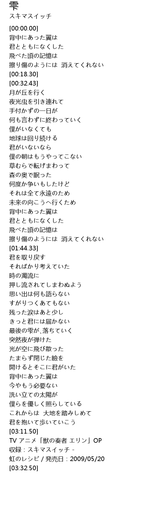 | [03:18.50] | 収録:スキマスイッチ - 虹のレシピ/発売日:2009/05/20 |