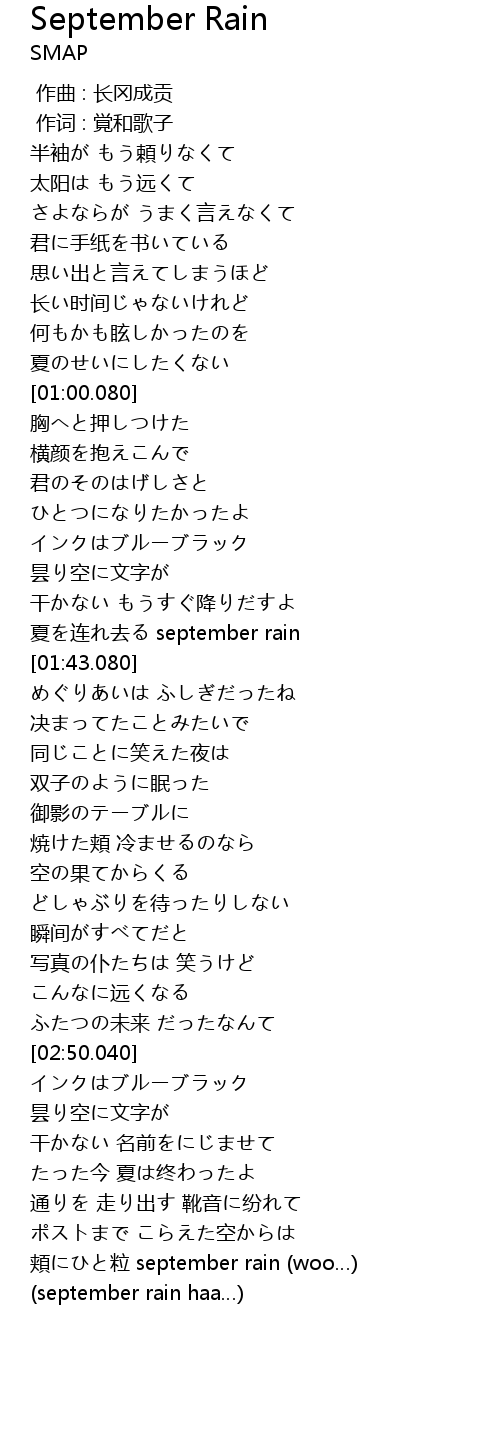 | [04:00.160] | september rain haa |